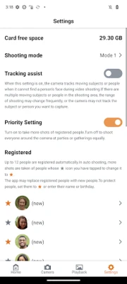 ・Add people automatically registered by the camera as favorites and set their shooting priority.