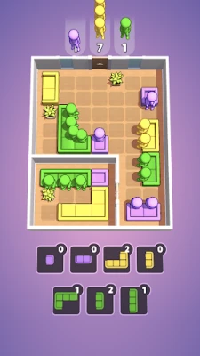 Place colorful seats in the rooms wisely so characters of the same color can sit and no one is left standing.