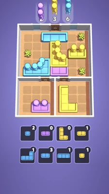 Each character comes in a specific color, and there are corresponding seats of different hues. Your goal is to match each character with a seat of the same color to create a perfect match. The characters will only sit down when they find their matching seat.