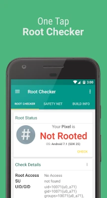One tap to verify whether the device passes SafetyNet compatibility test.