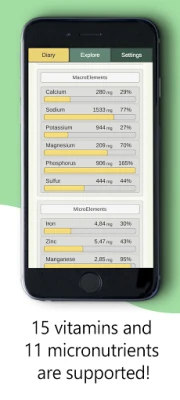 Being one of the most detailed nutrition trackers, ViCa Vitamin Calculator tracks macronutrients (calories, proteins, carbs and fats), 11 minerals (from calcium to selenium) and 15 most important vitamins.